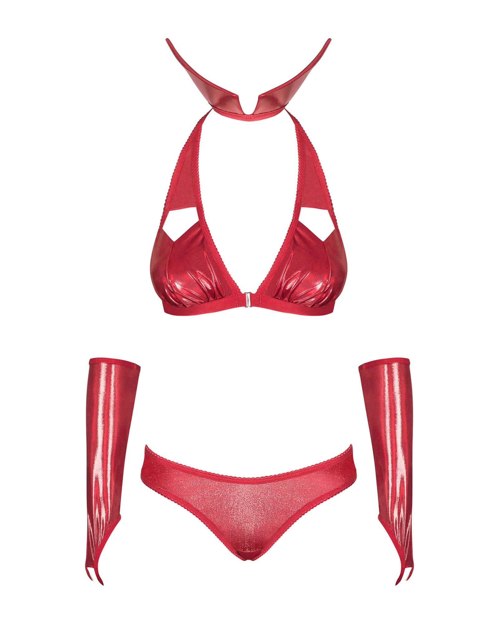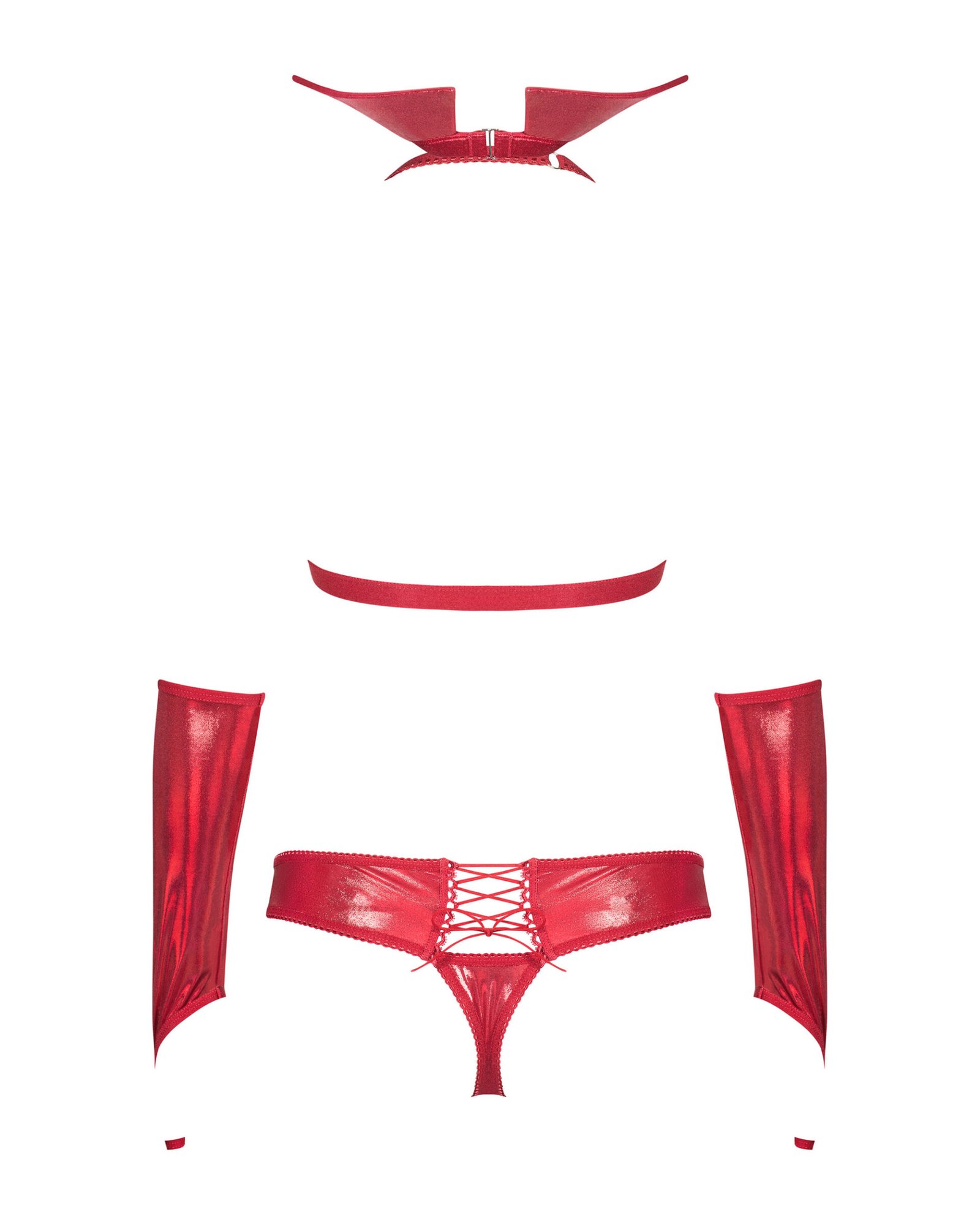 - спокусливий комплект, що складається з комірця, бюстгальтера, стрингів і рукавичок