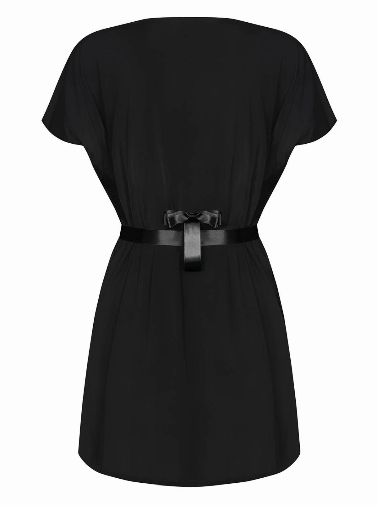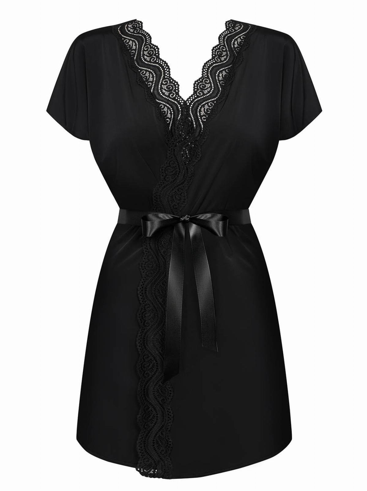 Халат атласний Obsessive 810-PEI-1 з мереживом, чорний, L/XL