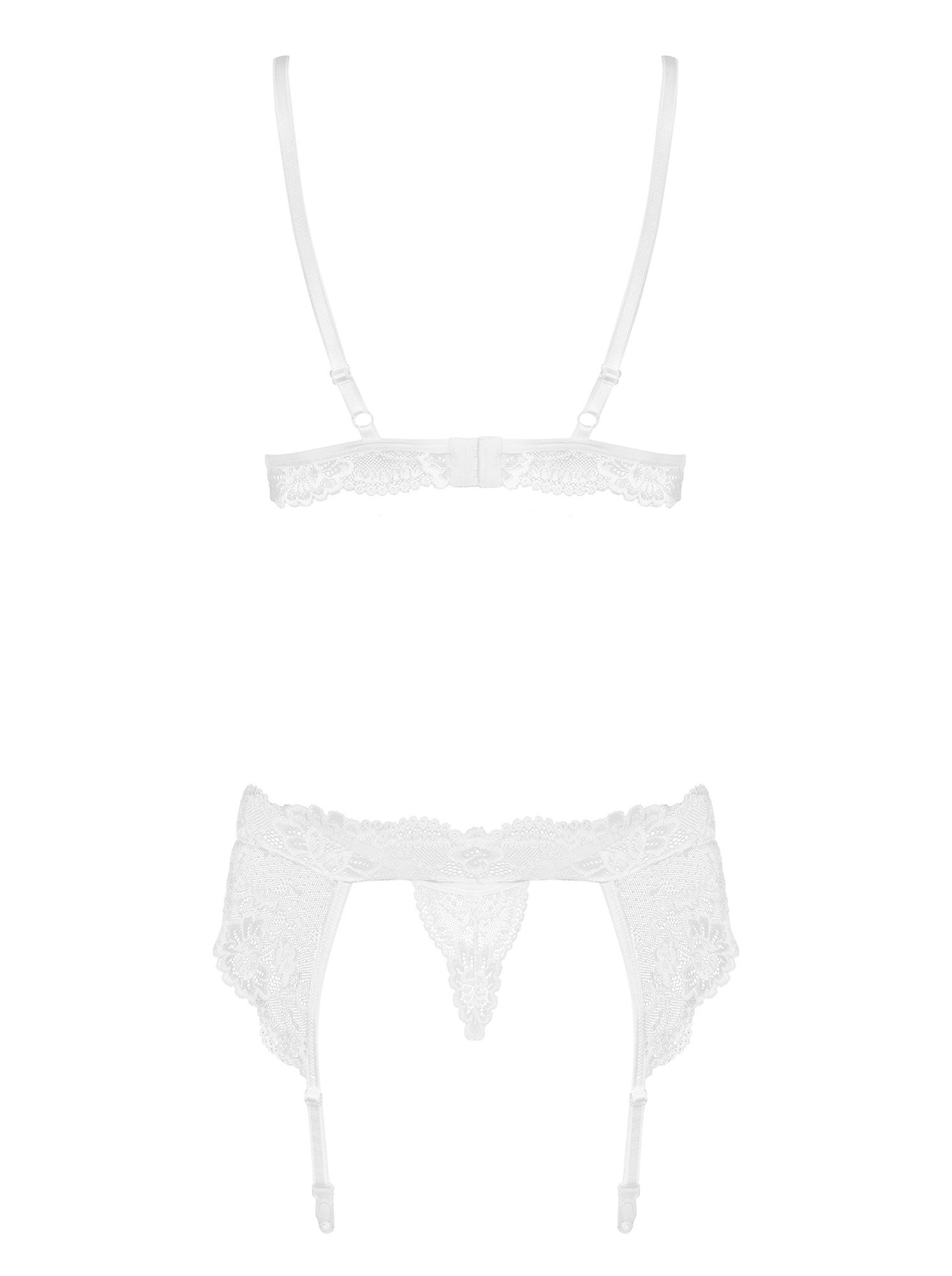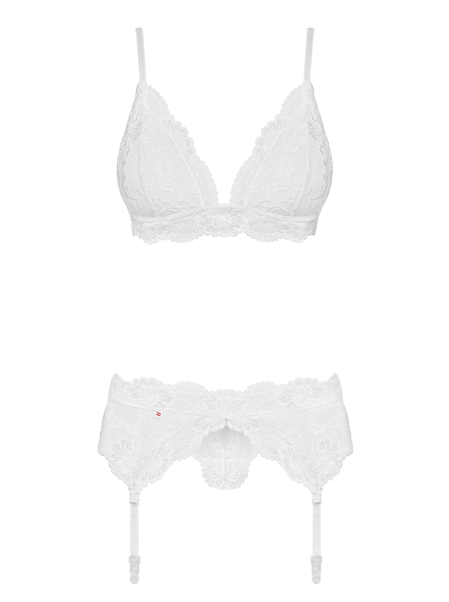 Комплект білизни мереживної Obsessive 810 з поясом для панчіх, білий S/M