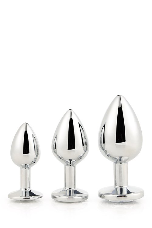 Колекція Gleaming Love представляє цей набір блискучих анальних пробок трьох розмірів, кожен із дорогоцінним каменем.