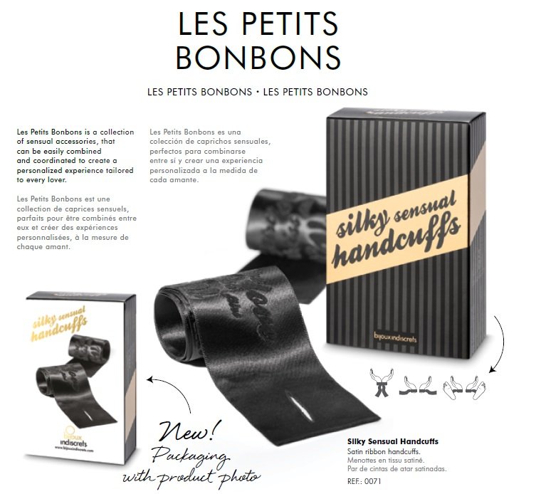 Але тільки-но ви просунете кінці стрічок у спеціальні отвори, вони перетворяться на міцні, але ніжні, наручники, а його або ваші зап'ястя огорне лагідний атласний полон.