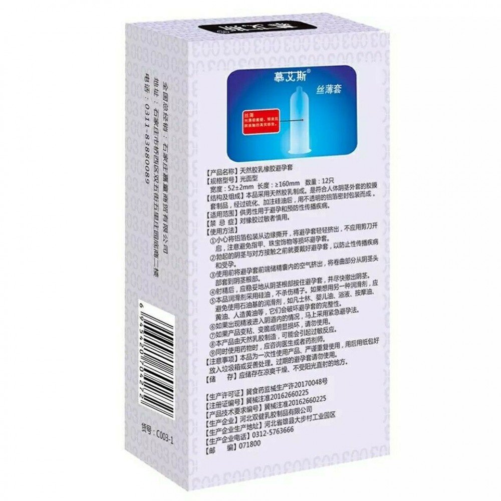 Набір ультратонких презервативів Muaisi 0,03 мм, Silver (в упаковці 12 шт.)