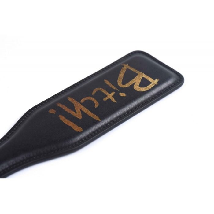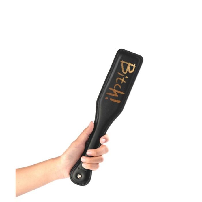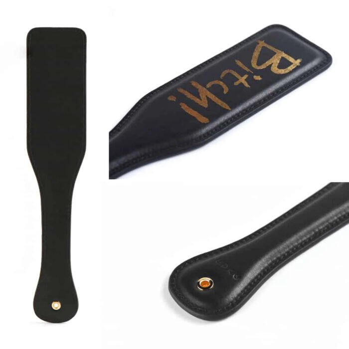 Якщо ви хочете випробувати на собі нові відчуття і поринуть у світ домінування і підпорядкування, то вам не обійтися без хорошого ударного девайса! Ця чудова шльопалка краще будь-яких слів покаже, хто головний вашій грі! Наносите нею удари по тілу партнерки, а потім дайте помилуватися на аксесуар, щоб краще запам'ятати напис на ударній частині — «Bitch». Повірте, незважаючи на грубість, такі речі дуже подобаються жінкам, і ваша улюблена обов'язково оцінить настільки брутальний жест. Паддл виконаний в класичній формі лопатки з виділеною рукояткою, простроченої по краях. Він точно залишить явний слід вашої любові на тілі вашої половинки. Характеристики: Довжина — 33 см Ширина — 6.6 см Матеріали — італійська шкіра, цинковий сплав Про бренд: Компанія UPKO була заснована в 2017 році, компанія створила своє нове бачення в БДСМ аксесуарах спільно з компанією Zalo. Ретельно пророблений дизайн кожного аксесуара об'єднують в собі розкіш і чудову якість. Всі товари UPKO виконані з італійської шкіри, поставляється вона від другого за величиною Постачальника шкіри в Італії. Який також постачає матеріали для GIVENCHY і для багатьох люксових брендів. Крім цього, фурнітура виробів покрита золотом в 24К, що безумовно додає яскравий контраст і залишає незабутнє враження. І на довершення товари дбайливо упаковуються в елегантну чорну коробку або оксамитовий чохол.
