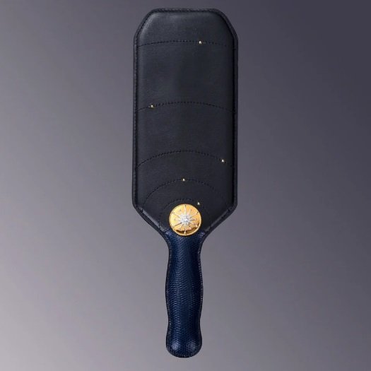Дизайн шльопалки для БДСМ доповнений чеськими цирконами, які виглядають як мерехтливі зірки на чорному космічному полотні.