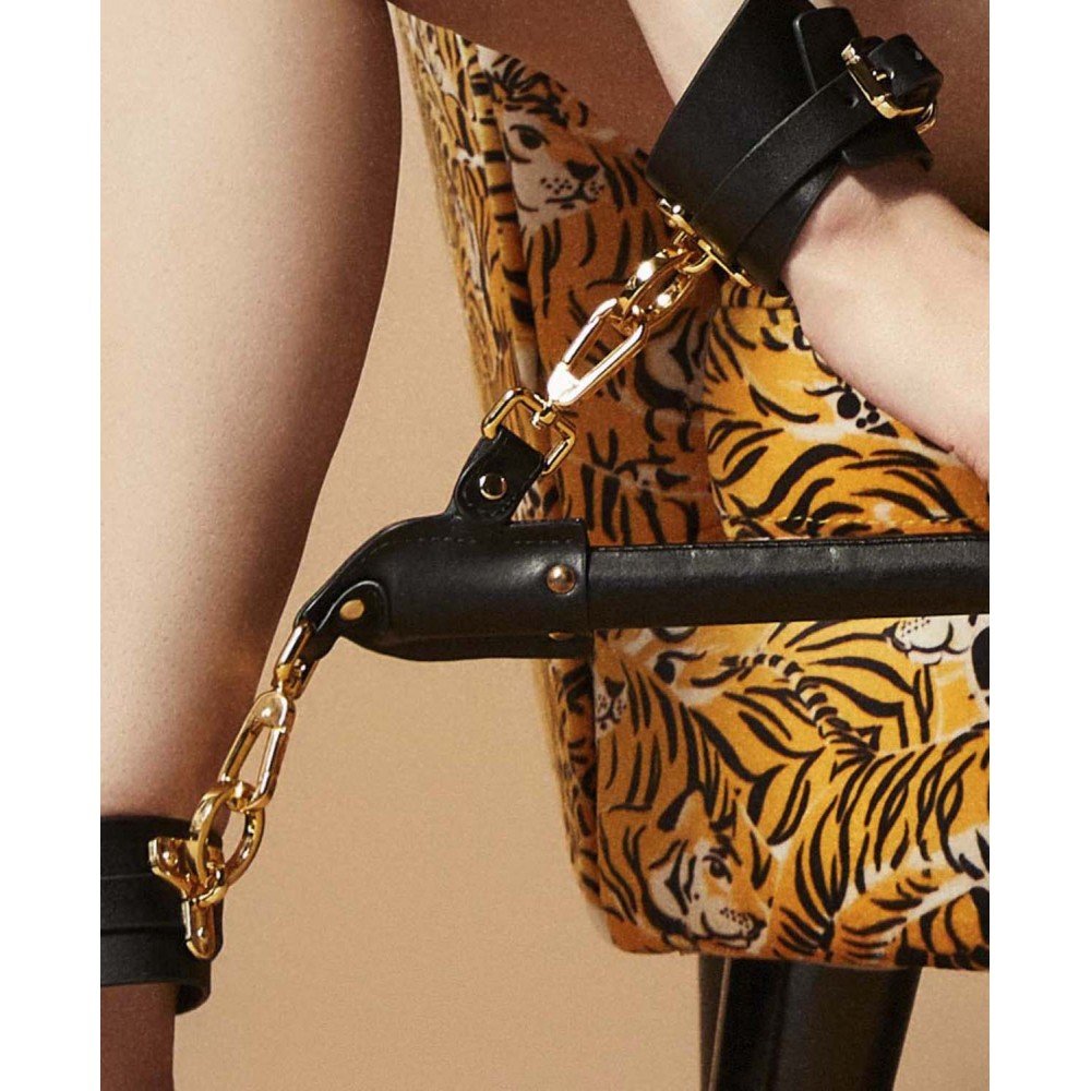 Замикаються карабіни, закріплені на кінцях щільними стібками, можна використовувати разом з наручниками і манжетами для щиколоток для закріплення.