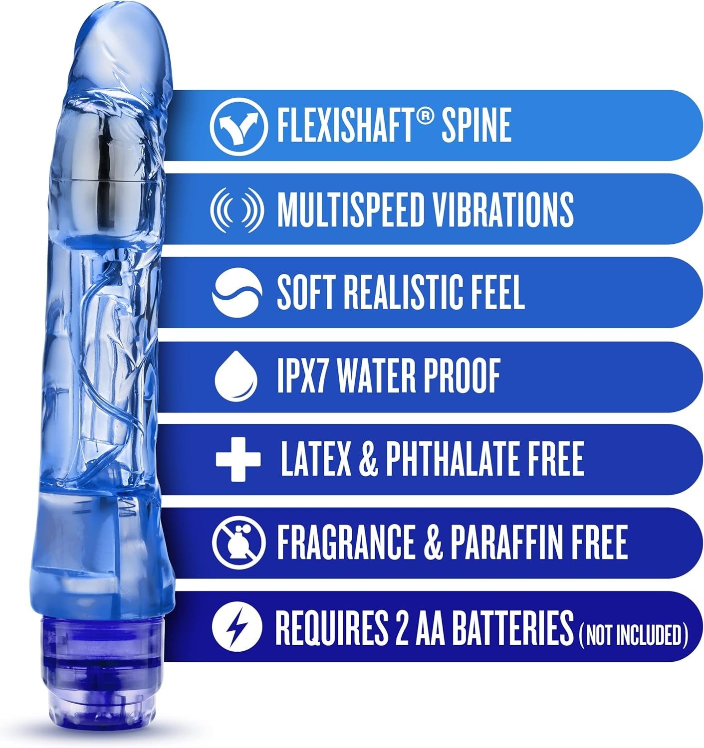 Реалістичний гелевий вібромасажер блакитного кольору. Виготовлений із безпечного для тіла матеріалу. Пружний, і в той же час приємний на дотик, простимулює всі ваші ерогенні зони і принесе незабутнє задоволення. Рельєфна поверхня для більш активної та чуттєвої стимуляції. Оснащений мультишвидкісною вібрацією.