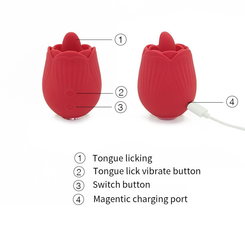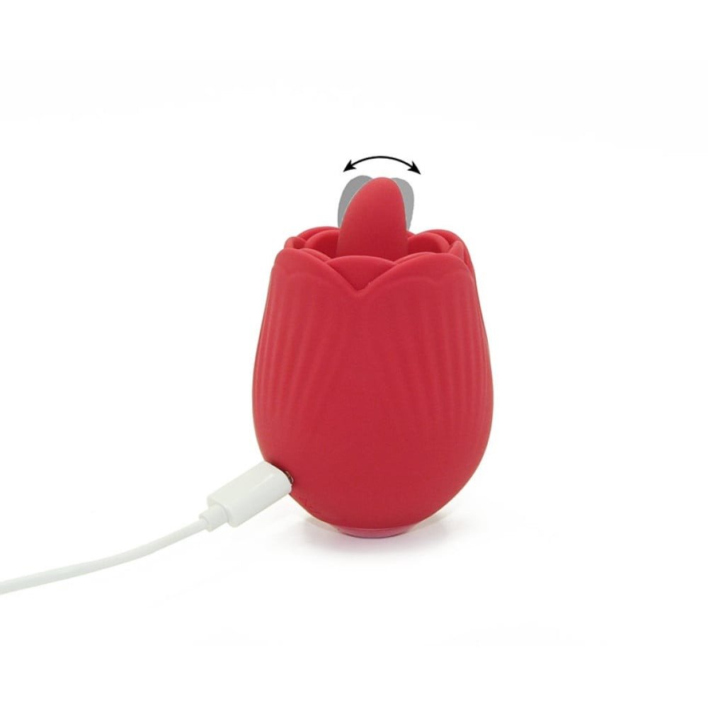 Вібратор трояндочка з язичком Sweet Em, 10 режимів , червоний