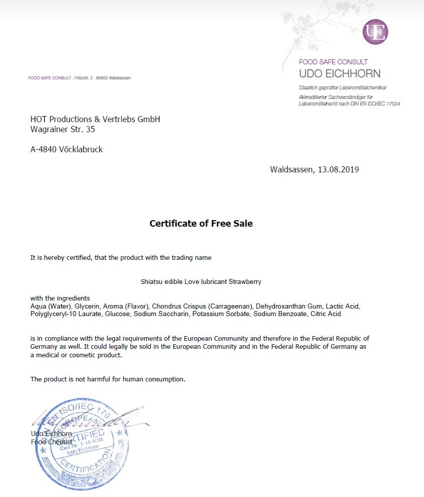 SHIATSU Love – це високоякісне мастило на водній основі перевіреного Австрійського виробника.