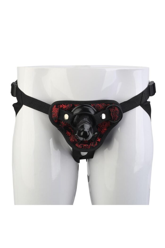 Знімний страпон Dream Toys Blaze Deluxe Strap-On Dildo на чорних трусиках з червоною вишивкою